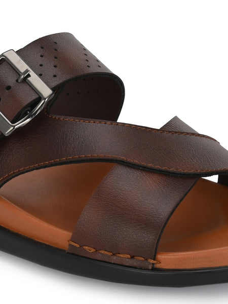 All 5 Men brown stitch designed adjustable slipper: 40 - BROWN items are already added to cart!