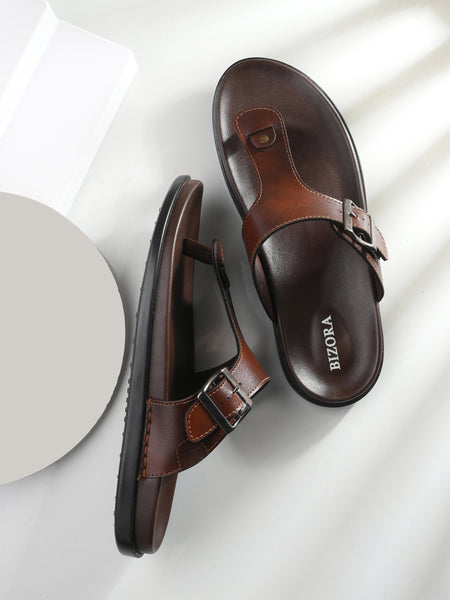 పురుషులు గోధుమ సర్దుబాటు పట్టీ థాంగ్ స్లిప్పర్